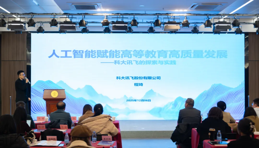 科大讯飞高教咨询西南区程琦总监分享AI赋能高等教育的落地成果,包括联合高校共建学科大模型、打造AI助教与学伴系统、开发智慧考试与课堂评价平台等,已在四川多所高校实现应用,助力教师精准教学、学生个性化学习,累计服务超百万师生。